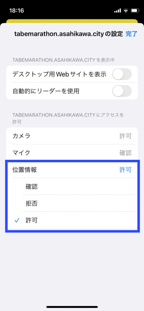 ウェブサイトの位置情報設定